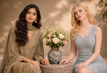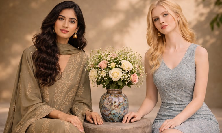 Modern fashion for women in the UK, blending timeless elegance with contemporary and cultural styles for every occasion.