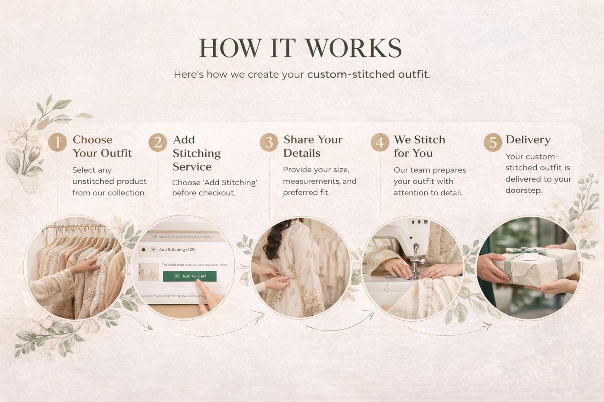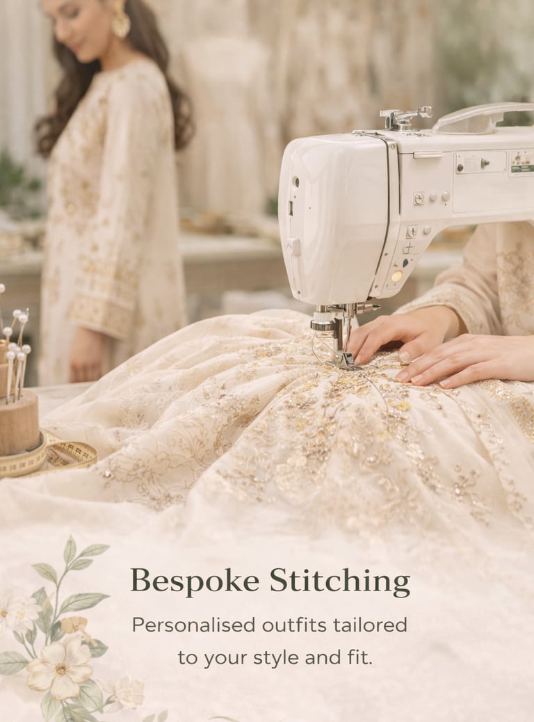 Experience personalised fashion tailored to your exact style and comfort. Our bespoke stitching service allows you to customise your outfit with precision, combining quality craftsmanship with modern design for a perfect everyday or occasion look.
